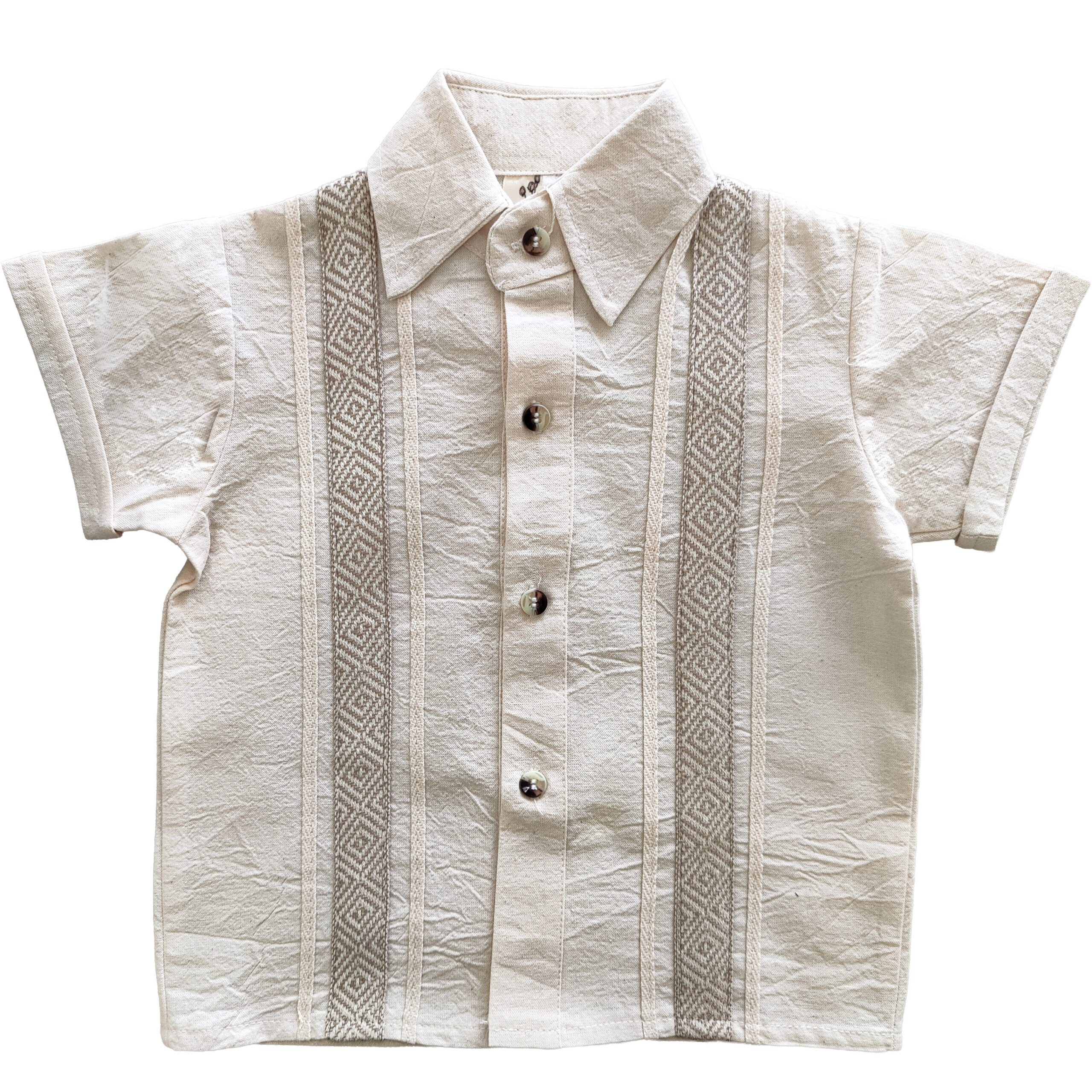 La Camisa Rombo Natural para niño refleja elegancia y tradición en un diseño fresco y atemporal. Confeccionada en tono natural, destaca por sus franjas verticales con tejido geométrico tipo rombo que aportan textura y carácter artesanal. Su cuello tipo mao y botones frontales en acabado orgánico complementan un estilo sofisticado pero cómodo. Ideal para celebraciones, eventos especiales o looks casuales con esencia auténtica Mantli.