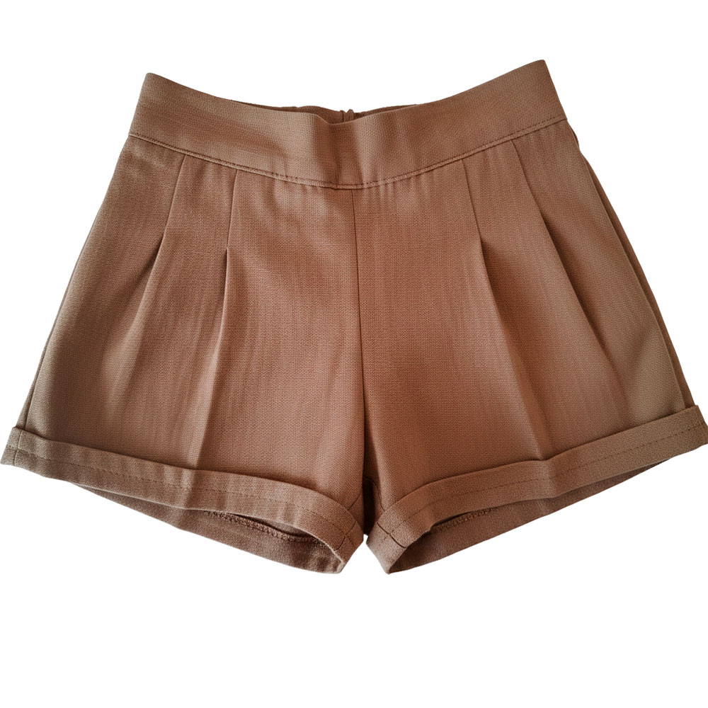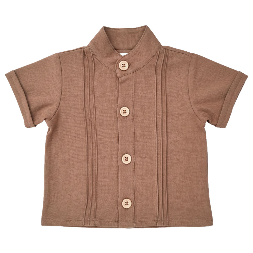 El Conjunto incluye camisa de manga corta con cuello mao y botones decorativos, combinada con short.